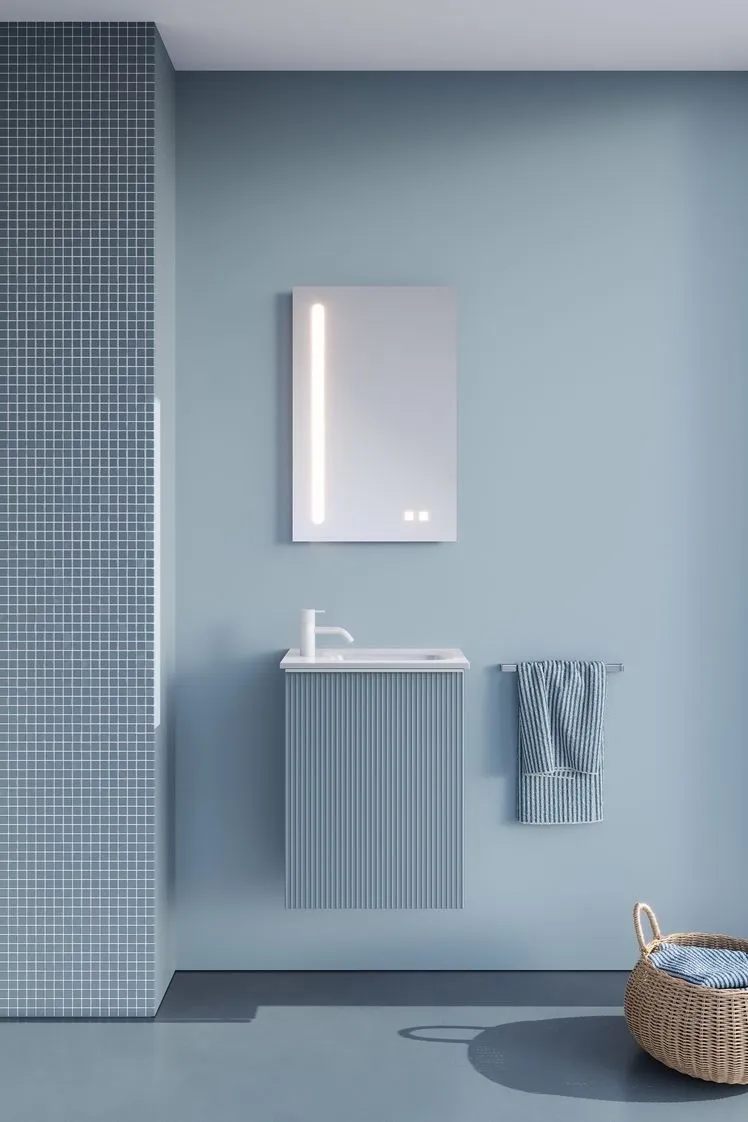 Die Möbel stehen in flexibel kombinierbaren Größenvarianten zur Verfügung. Waschtisch und Unterschrank (Höhe 60 cm, Tiefe 48 cm) gibt es in vier Breiten: 62, 82, 100 und 120 cm. Die Spiegelschränke und LED-Leuchtspiegel sind maßlich abgestimmt, der Doppelwaschtisch kann optional mit zwei Armaturen ausgestattet werden. Mit Fiumo 2.0 wird das Angebot durch neue Dekore und Bicolor-Optionen erweitert.