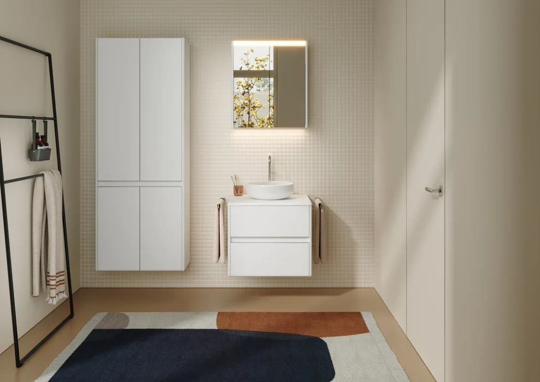 Die Serie bietet verschiedene Größen und Varianten, sodass sich individuelle Badlösungen realisieren lassen. Unterschiedliche Waschtischbreiten, Möbelkombinationen und Ergänzungselemente ermöglichen eine flexible Planung. Die Möglichkeiten reichen vom kompakten Einzelbad bis hin zu großzügigeren Raumkonzepten.
