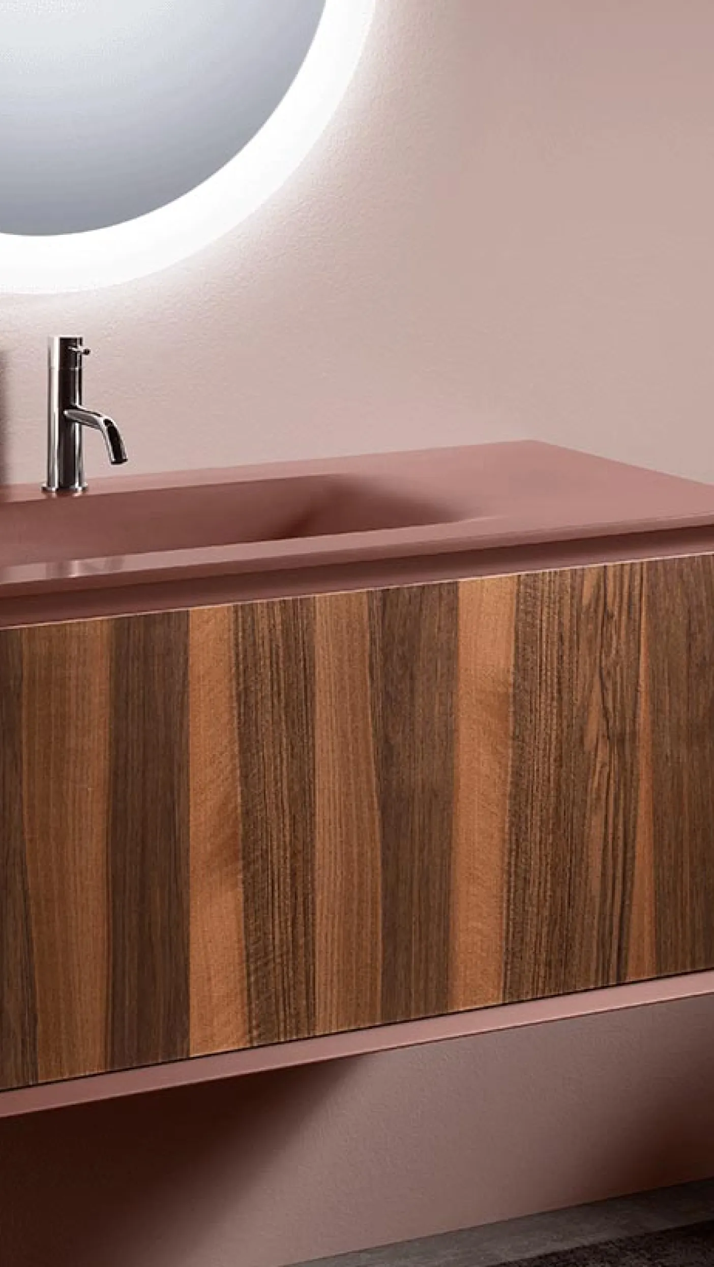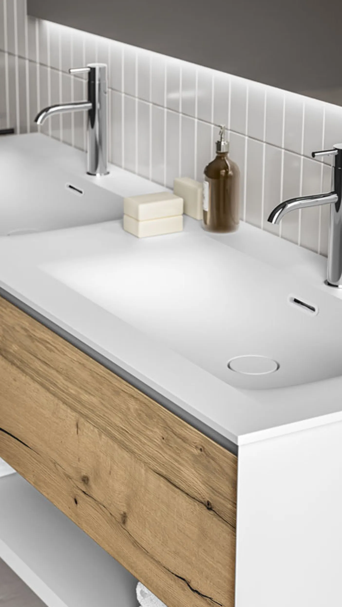 Ein Badmöbelsystem mit architektonischem Anspruch: reduziert auf das Wesentliche, charakterstark im Detail.