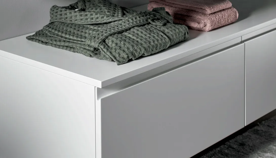 • Kombinierbar mit integrierten Becken, Aufsatzwaschbecken, offenen Elementen und Unterschränken